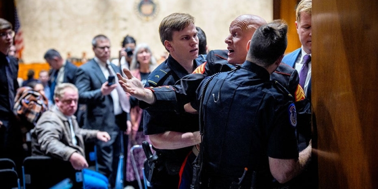 - The incident involved a violent removal during a hearing with Senator Tim Sheehy, bringing more attention to the race.