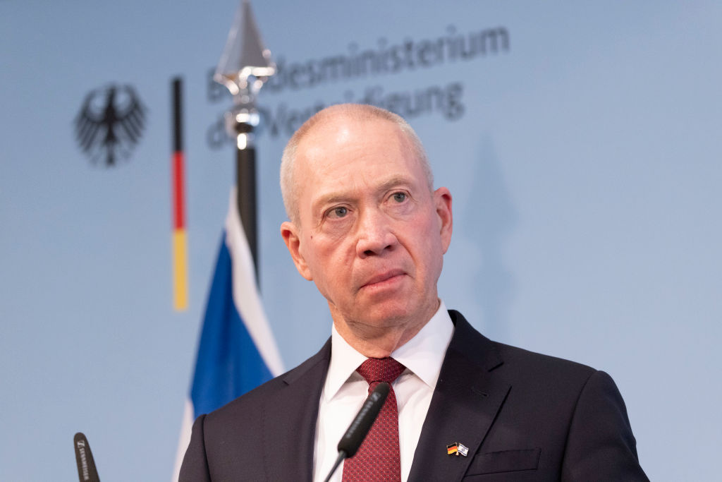 BERLIN, GERMANY - SEPTEMBER 28: Israeli Defence Minister Yoav Gallant attends a press conference after signing a joint declaration with German Defence Minister Boris Pistorius on intent over the purchase by Germany of Israel's Arrow 3 missile defence system on September 28, 2023 in Berlin, Germany. The purchase is worth an estimated EUR 4 billion and is the biggest defence equipment deal in Israeli history. (Photo by Maja Hitij/Getty Images)