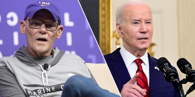 <ul class='nugget-express'>James Carville sounds off on Dems hemorrhaging support of Latino male voters: 'We're gonna f---in lose 'em!'</ul> <br/><br/> Source: <a href="https://www.foxnews.com/politics/james-carville-sounds-off-dems-hemorrhaging-support-latino-male-voters">https://www.foxnews.com/politics/james-carville-sounds-off-dems-hemorrhaging-support-latino-male-voters</a>)